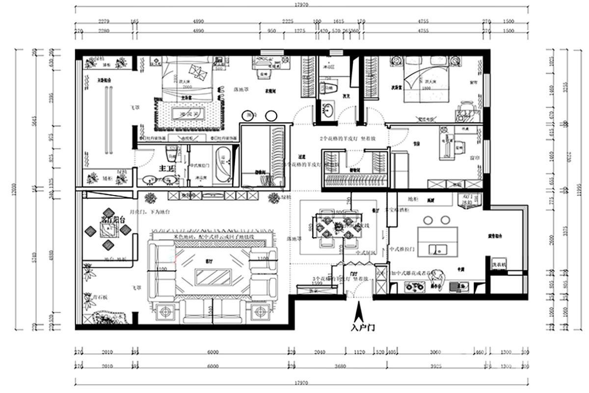 澳林观邸项目,小区南北通透,户型方正,采光通风良好。经过与业主多次沟通最终采用中式风格作为本案例最终设计风格
