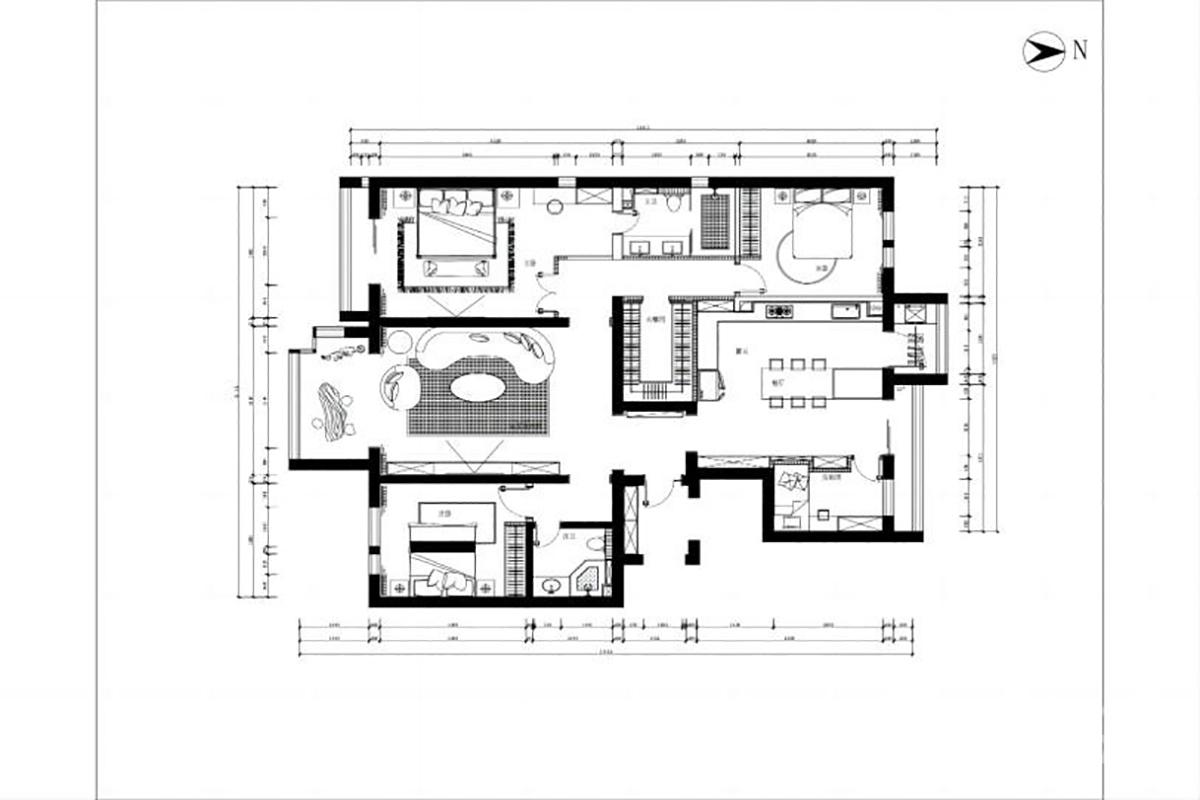 原有户型正中间是客卫洗衣房,业主很不满意这点,注重风水。将此空间改造成独立的大衣帽间,厨房餐厅融为一体式。