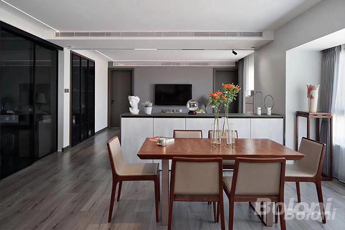 我们打造的这款客餐厅,以通透采光设计引入充沛自然光,餐区布局兼顾用餐与社交实用性,收纳与装饰一体的柜体满足功能需求,软装点缀更显雅致,让空间在舒适实用中尽显品质格调。