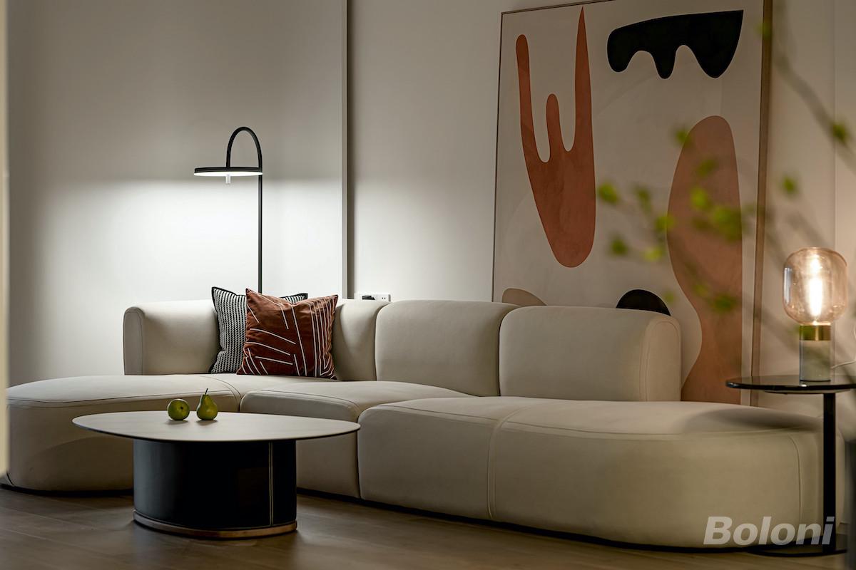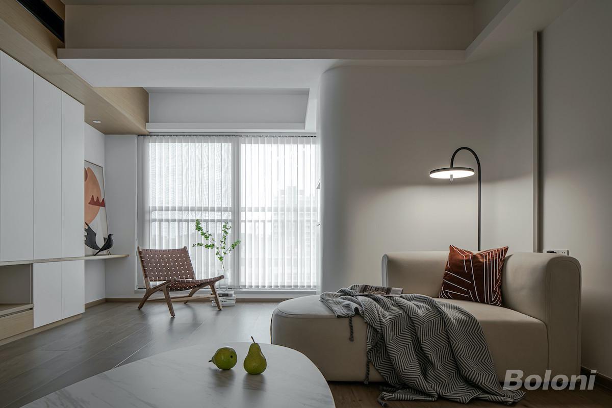 圆润的弧线,柔美的氛围,充满浓厚的治愈感。灵动色彩的挂画给宁静的空间增添平衡感,动静相互制衡,有条不紊。自然光的明朗与氛围灯的温和相碰撞,使得整个空间层次鲜明,视觉冲击感受循序渐进。