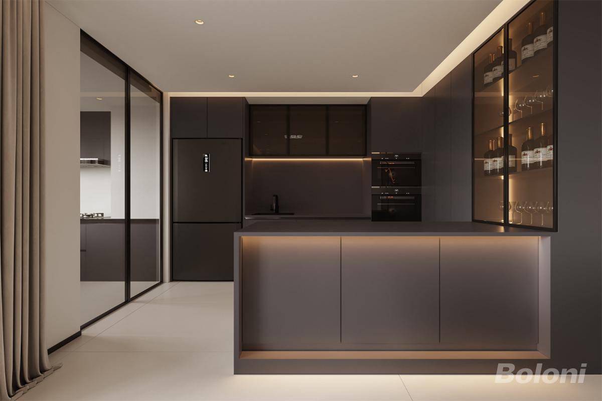 开放式厨房的设计使空间更加通透和宽敞。没有了墙壁的阻隔,厨房与其他生活区域融为一体,创造了一个流畅的互动环境。这种布局促进了家庭成员之间的交流,同时也为社交活动提供了理想的场所。