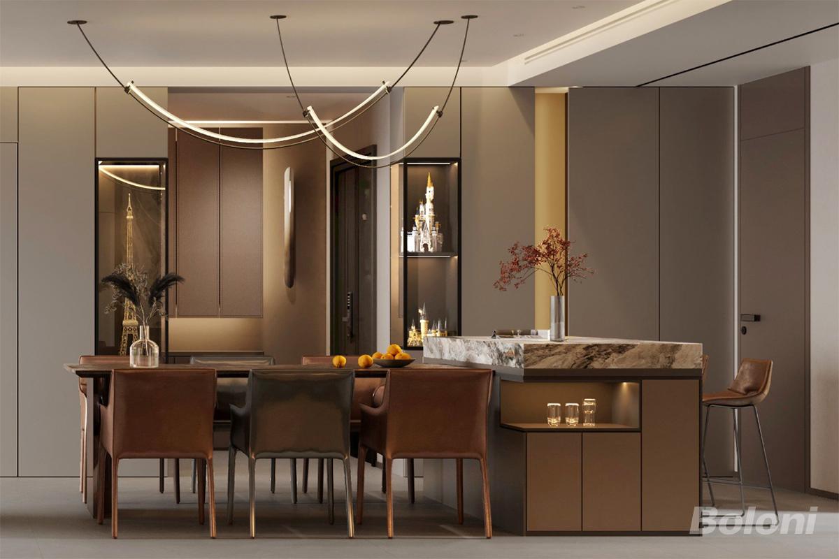 轻奢风以简约、舒适、低调而内敛为特点,表现出高贵与奢华的品质。在色彩搭配上,轻奢风倾向于使用浅色系作为主色调,营造通透明亮的居住空间,配色清爽大气。在材质选择上,轻奢风注重质感和美感的共存,常常选用大理石、金属、丝绒等材质来打造家居配饰。