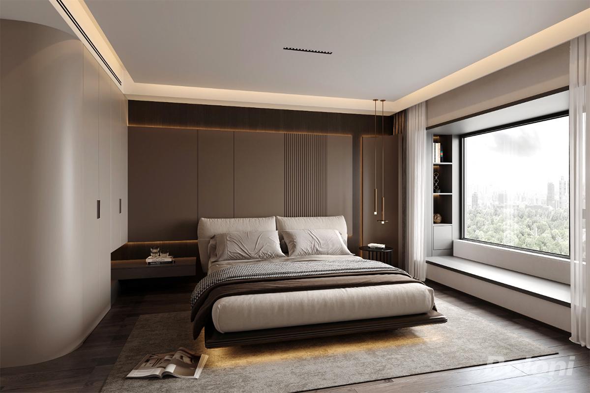 这个现代轻奢风格的主卧将为您带来精致而舒适的居住体验,让您在优雅、时尚的环境中找到内心的宁静与满足。无论是休息、放松还是阅读,都能在这里享受到高品质的生活。期待您在这个现代轻奢的卧室中度过美好的时光!