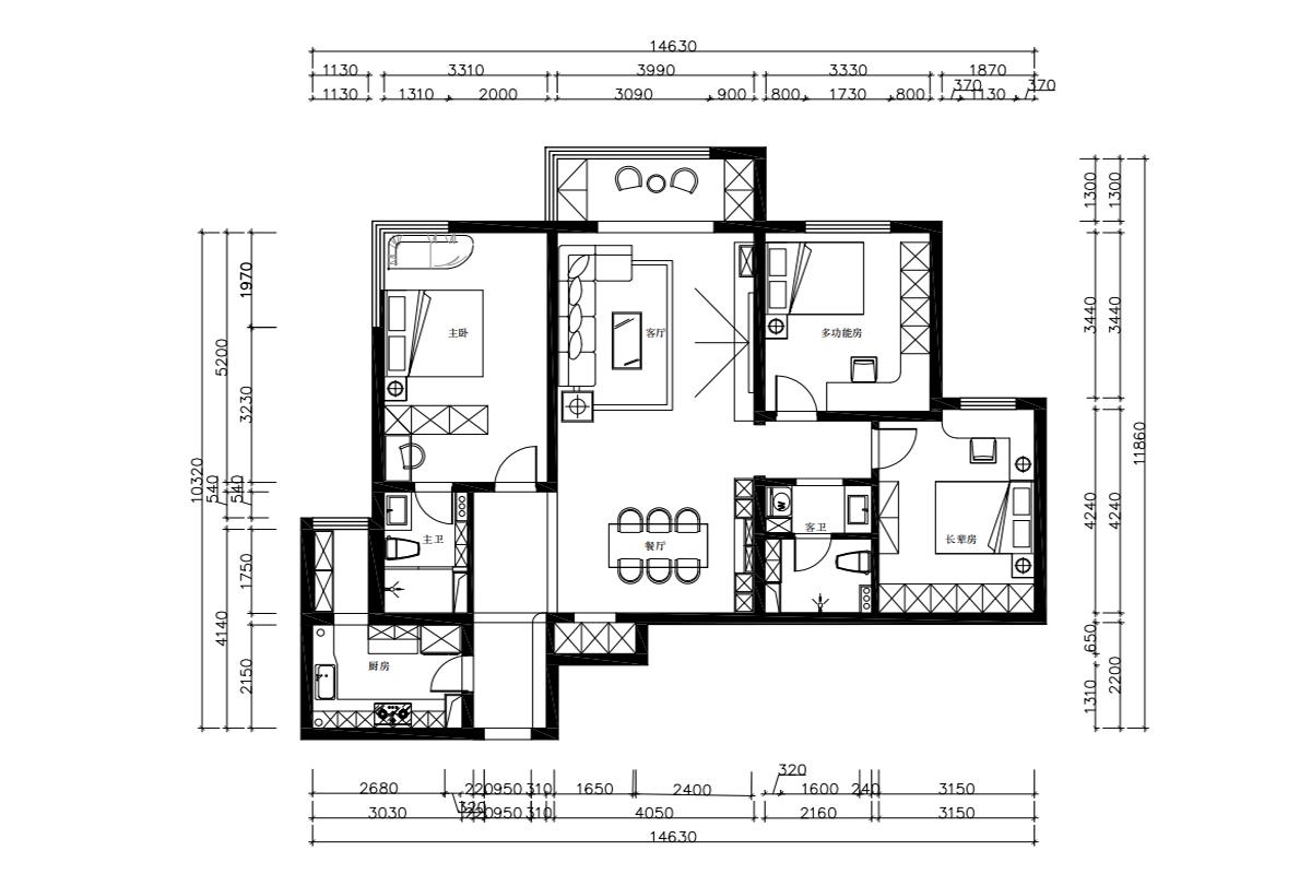 功能分区的合理性也是户型改造的关键。根据居住者的生活习惯和需求,将空间划分为不同的功能区域,如客厅、卧室、厨房、卫生间等。同时,要考虑到动静分区,确保休息区域的安静与舒适。例如,将卧室集中布置在较为安静的一侧,而将客厅、餐厅等活动频繁的区域安排在靠近入户门的位置。