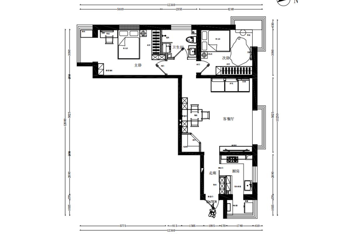 本方案根据客户需求,大的格局没有过多变动,小变动使空间更合理,更贴切生活,入户玄关增加了储物功能,客厅家政储物间美观不突兀,卫生间扩大既不占多大空间又增加洗衣功能。