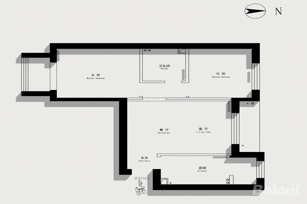该项目原本为两居室,客户改建为三居室,新建卧室的隔断采用窗户的方式,保留采光和通风功能,使整个空间视野明亮