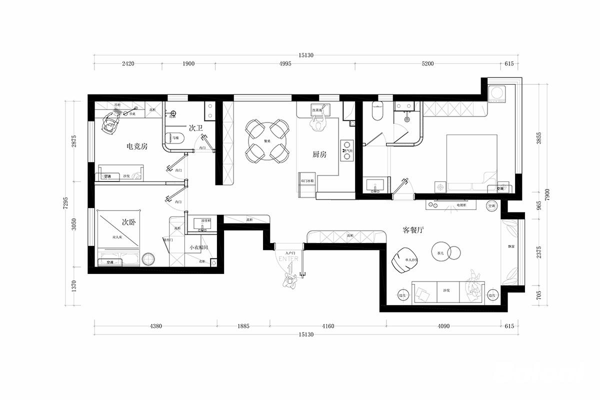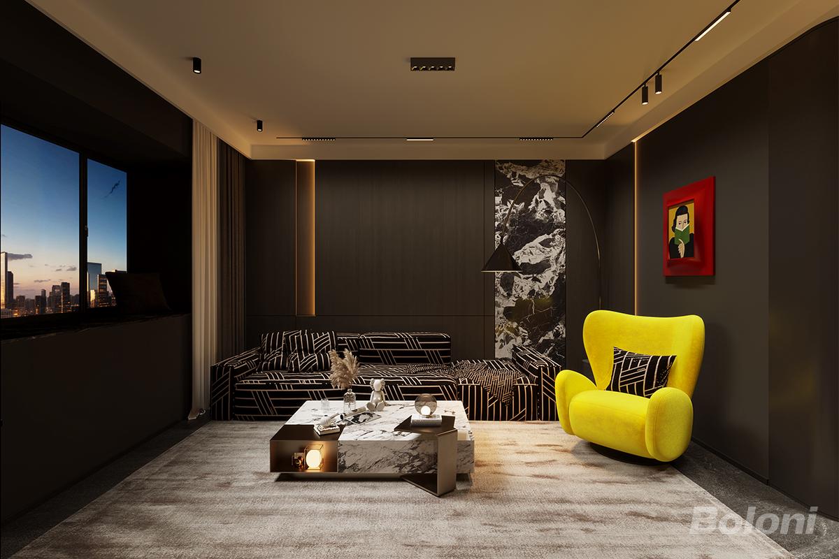 本案以黑色为主色调,营造出沉稳、深邃的空间氛围。这种色彩不仅具有强大的视觉冲击力,还能激发人们对神秘感的探索欲望。