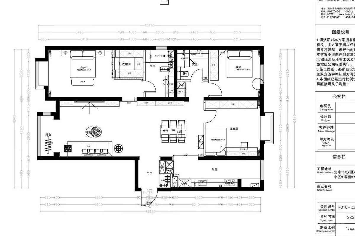 这份户型平面图呈现出较为规整且功能分区明确的布局。 从居住空间来看,有主卧、次卧和儿童房,能满足多人口家庭的居住需求。主卧配备衣帽间与主卫,提升了居住的私密性与便利性,为主人提供专属的收纳和洗漱空间。次卧和儿童房也有合理的空间规划,可根据家庭实际情况用作卧室或书房等。 公共区域方面,客厅、餐厅相连,形成开阔的活动空间,适合家庭聚会或日常休闲娱乐。厨房紧邻餐厅,采用常见的布局设计,方便烹饪后的餐食传