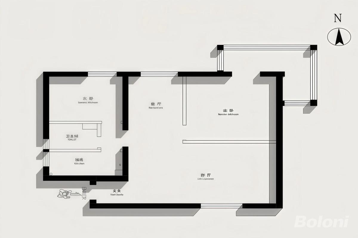 原有客厅北侧空间隔出第三间卧室,客厅采光较差,卧室的隔断为半高墙加隔断窗的形式,增加客厅的通风采光。