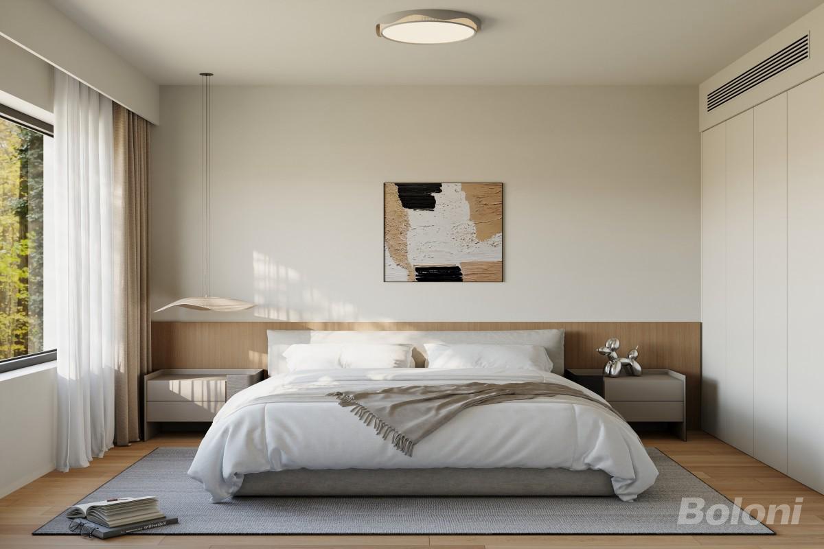自然的木质纹理与温暖的色调相结合,让空间充满自然气息,仿佛置身于大自然的怀抱。 柔和的奶油色墙面与床品,带来舒适、清新的视觉感受,完美平衡了现代与自然的元素。
