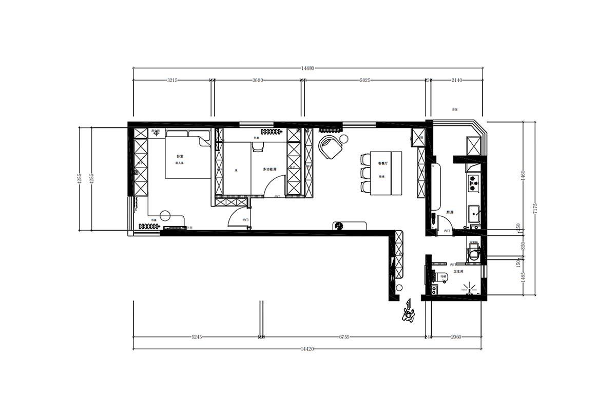 整体空间为两居一厨一卫一厅。由于常住人口两人,所以另外一居室作为多功能房使用,可以享受生活的同时也满足了偶尔居住的功能。