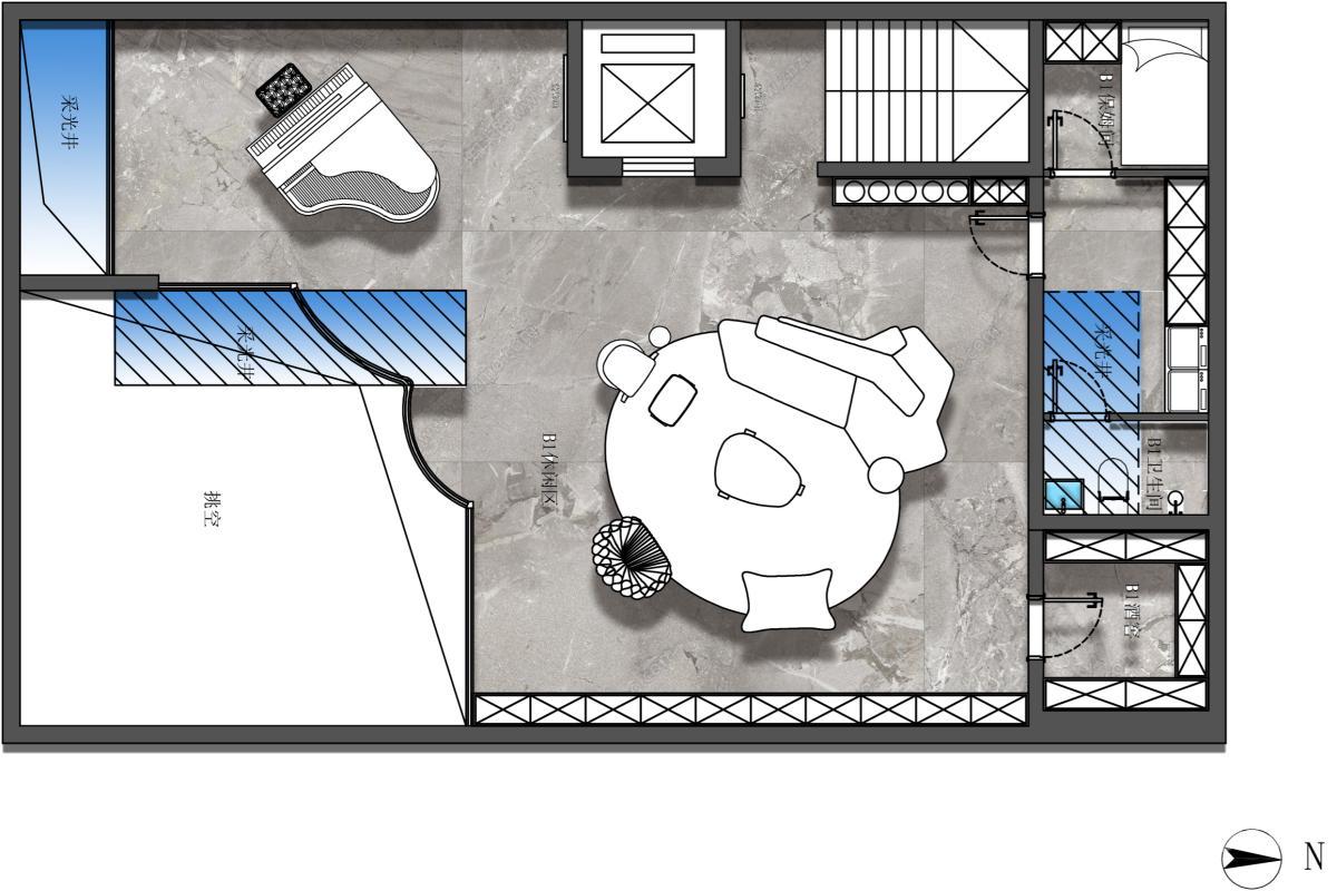 该地下一层空间布局注重采光与休闲功能,多处采光井优化光线。休闲区布局灵动,挑空设计增强空间层次。配备卫生间、储藏间满足日常需求,动线合理,功能与美学兼具,打造出舒适且具通透感的地下休闲居所。