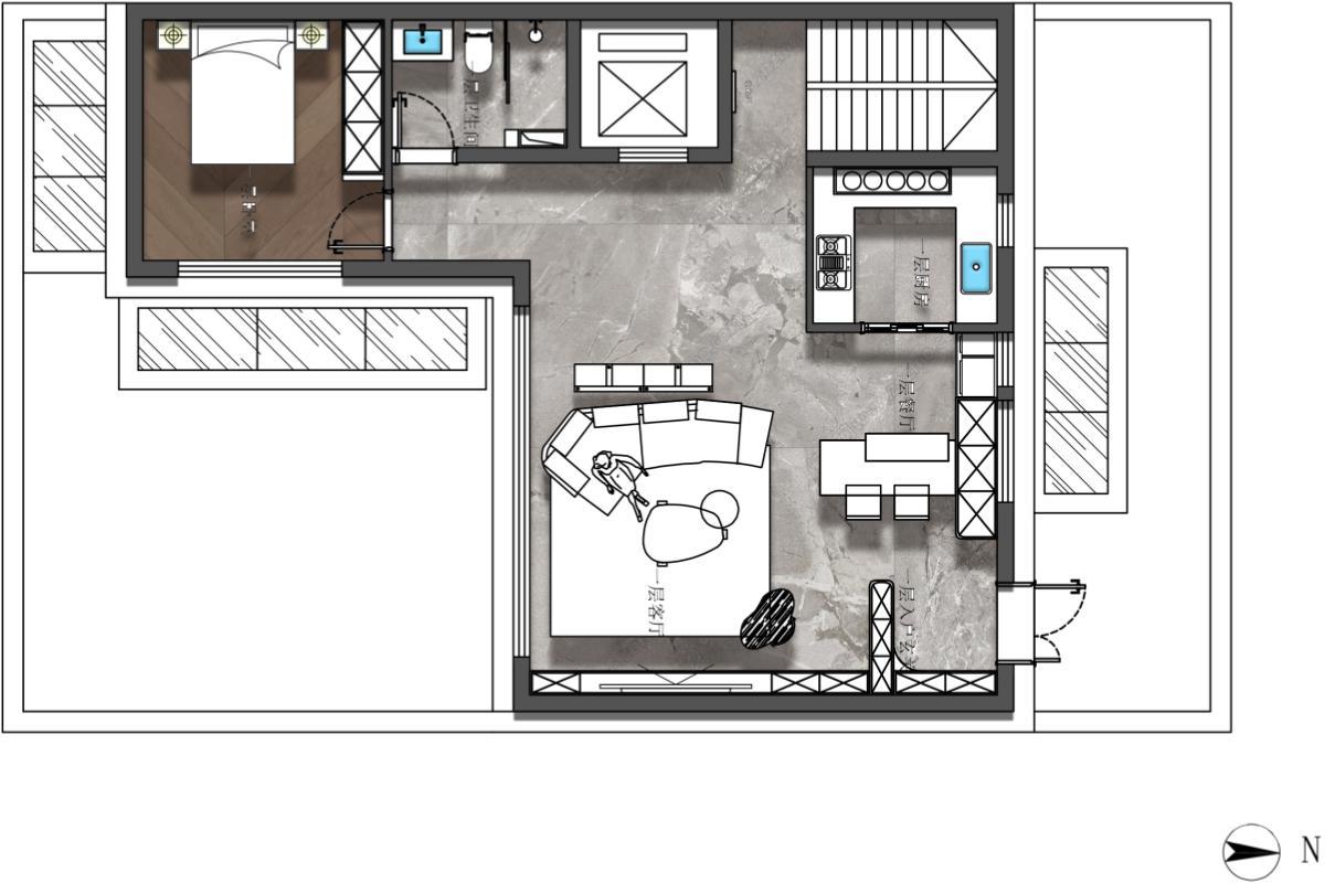 该地下一层空间布局注重采光与休闲功能,多处采光井优化光线。B1 休闲区布局灵动,挑空设计增强空间层次。配备卫生间、储藏间满足日常需求,动线合理,功能与美学兼具,打造出舒适且具通透感的地下休闲居所。