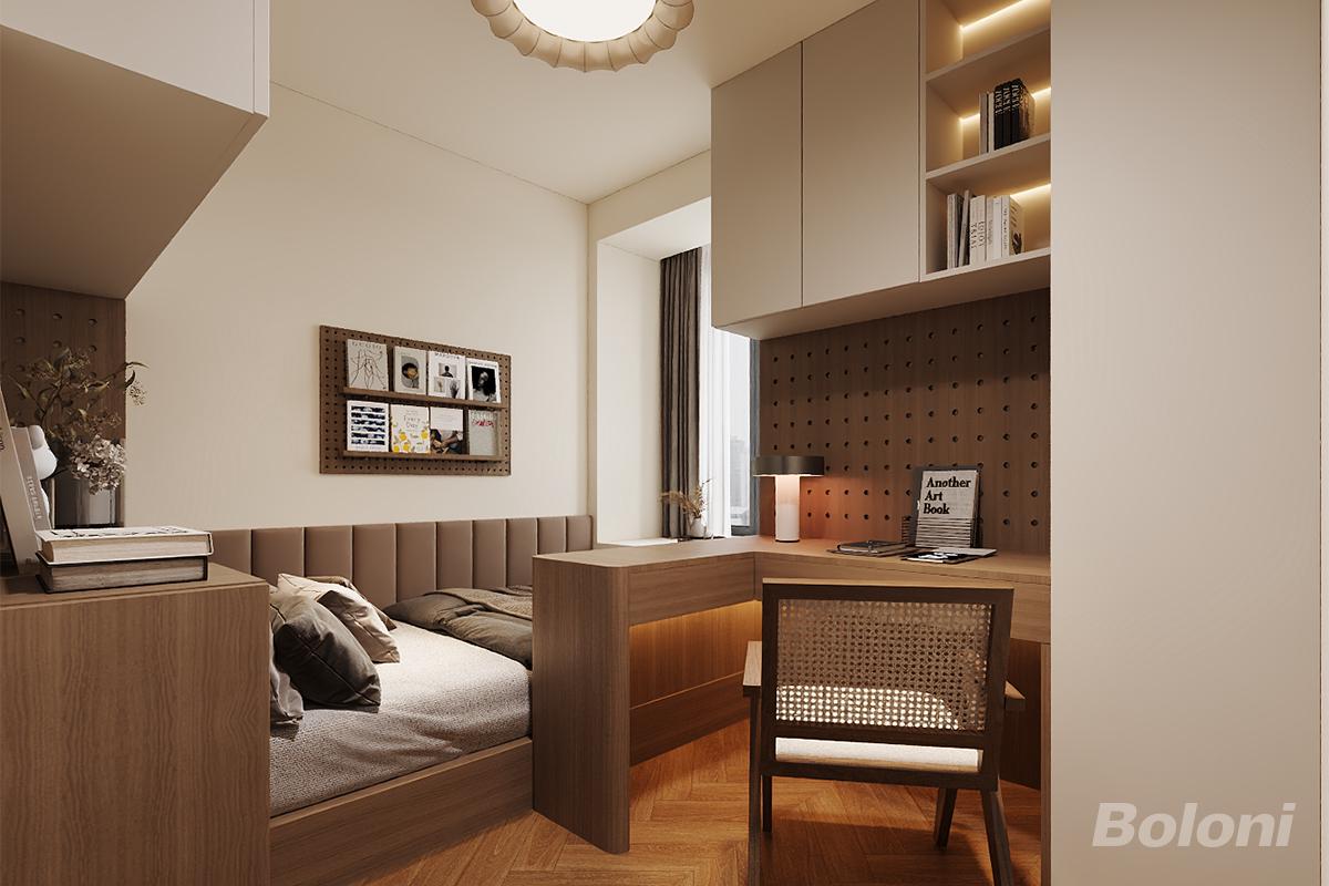 次卧空间有限的特点,实现“睡眠+大容量储物+一体化读写”三合一,适配日常休憩、临时办公、学习或客人留宿等场景。