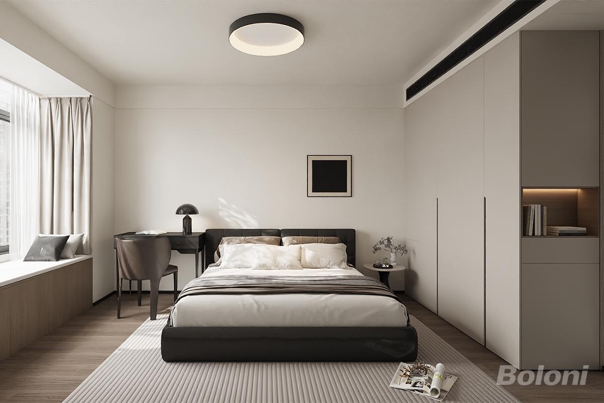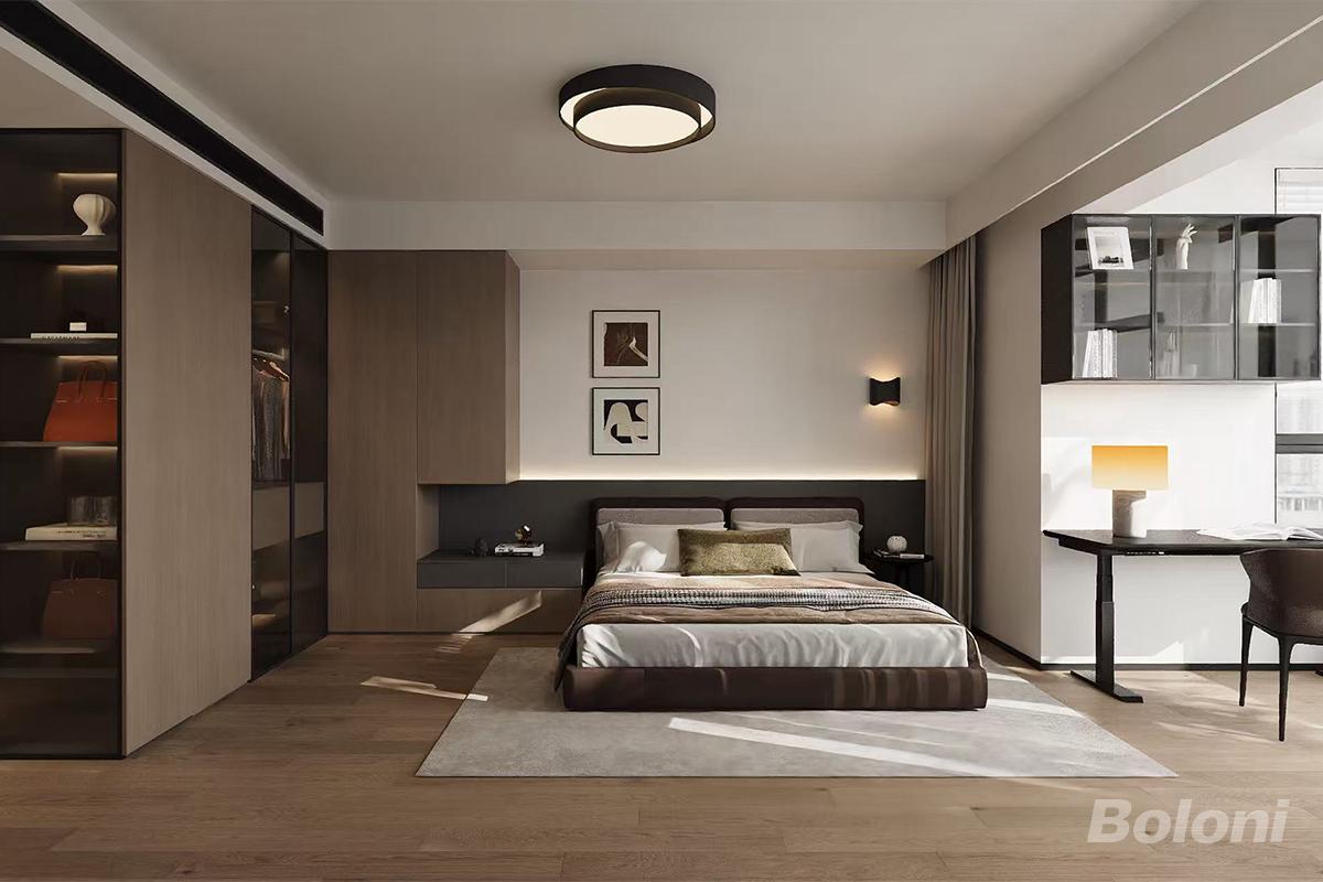 以“功能整合+克制质感”为核心,通过一体化布局、低饱和色彩与细节氛围营造,打造兼具实用性与精致感的都市主卧,适配当代多元居住需求。
