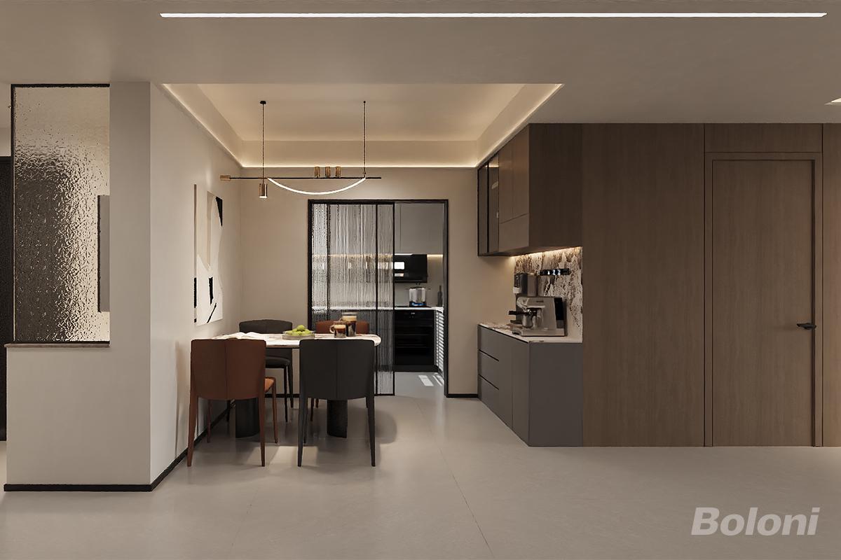 以“空间集约+功能适配+质感统一”为核心,通过餐桌靠墙布局释放动线空间,结合餐边柜实现收纳与展示的平衡,打造适配户型的实用型餐厅,延续整体现代简约风格的克制美学。
