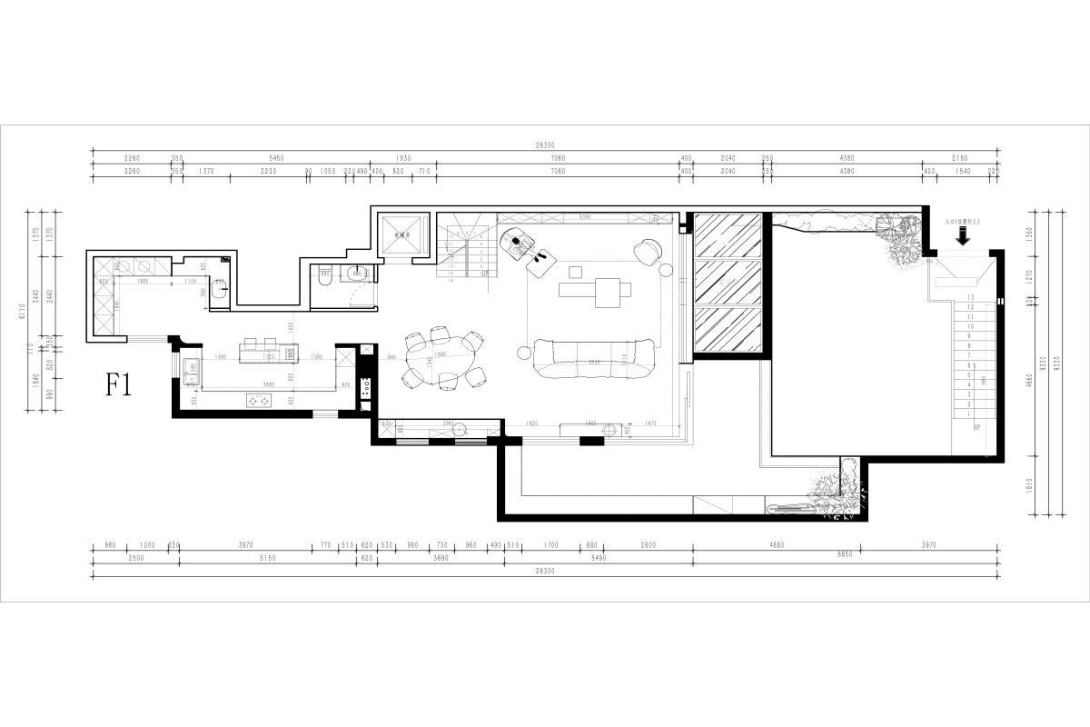 客厅、餐厅、厨房一体化设计,形成 “LDK(客厅 + 餐厅 + 厨房)” 核心社交空间,适配家庭团聚、待客等多元场景;厨房为开放式(或半开放式),与餐厅动线直接,提升烹饪与用餐的联动性。包含卫生间(满足首层临时如厕需求)、楼梯间(连接地下 / 上层空间,实现垂直交通),同时预留设备类空间,保障功能完整性。