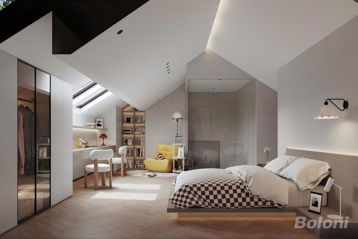 规划大尺度主卧套房,配备独立卫浴(含浴缸、双台盆)与专属休憩空间,打造 “酒店式” 私密居住体验。设置大面积的顶层休闲空间(配备沙发、艺术家具),可作为家庭 “顶层会客厅”“观景休闲区”,充分利用顶层的视野优势。