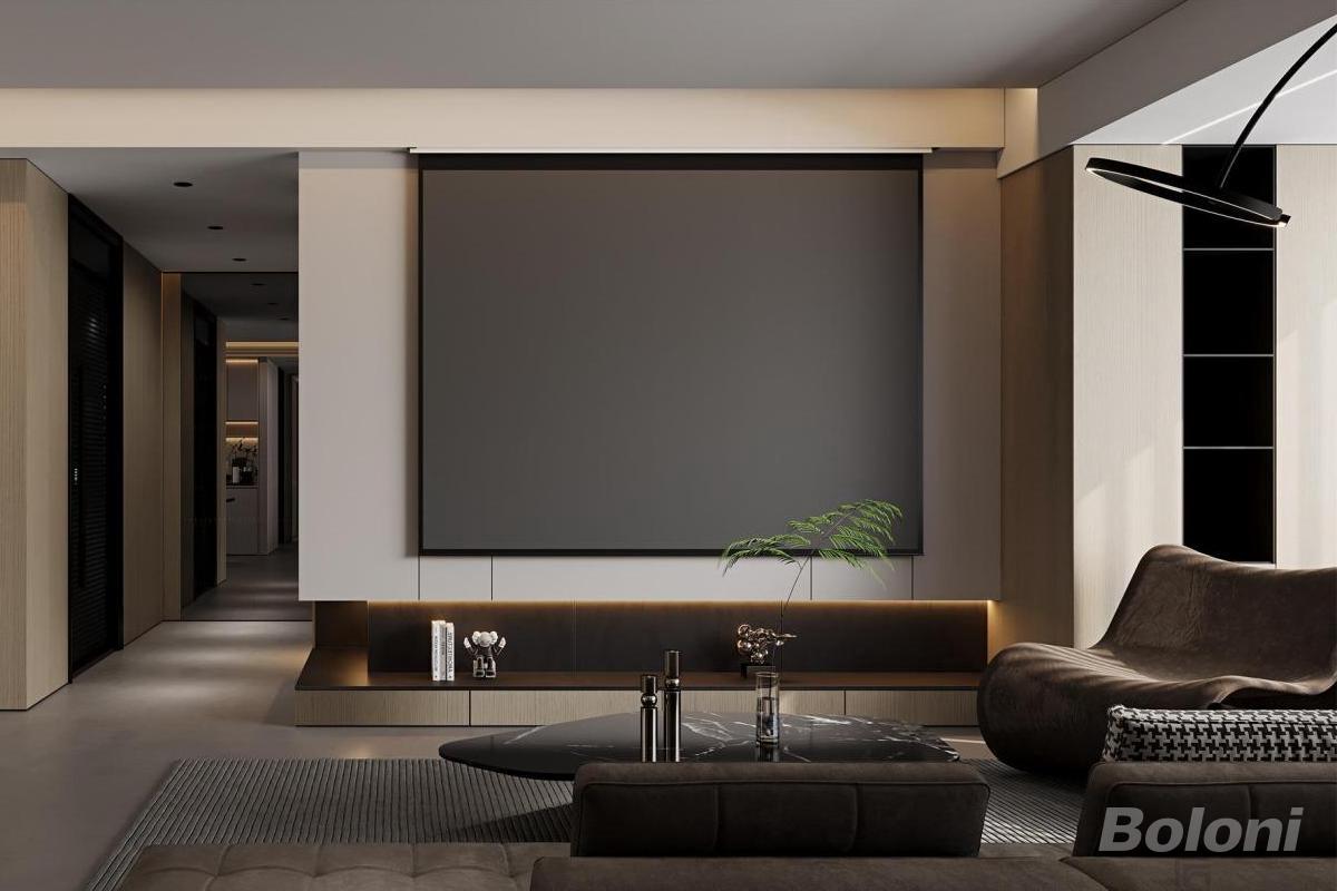 客厅以现代轻奢勾勒「简而愈奢」的场域:悬浮电视墙嵌线性光,消融边界;皮革家私、大理石茶几交织触感,金属陈设暗藏张力。低饱和色调统摄全局,光影在材质间游弋,让松弛氛围与精致质感共生,重构当代社交起居美学 。