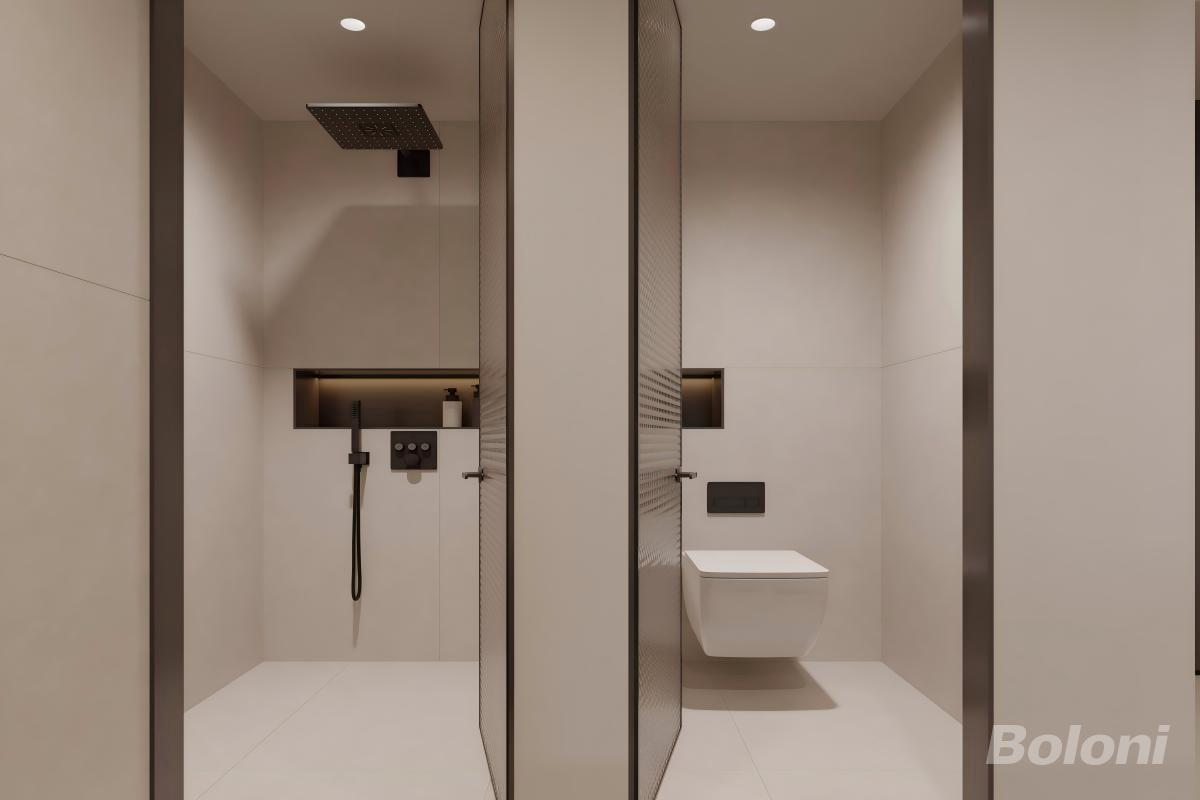 以黑白灰中性色系为主,采用哑光深灰柜体、浅灰墙面、白色地砖,营造简洁克制的视觉效果;无主灯设计(嵌入式筒灯)与大窗户的自然采光结合,强化空间通透感,体现现代极简 “少即是多” 的核心逻辑。