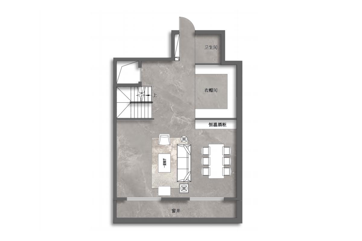 这个负二层户型以 “休闲社交” 为核心,整合客餐厅打造开阔互动区,搭配餐厅 + 恒温酒柜强化宴请功能;增设衣帽间、卫生间提升实用性,楼梯衔接上层空间,窗井保障采光,整体兼顾舒适与格调。