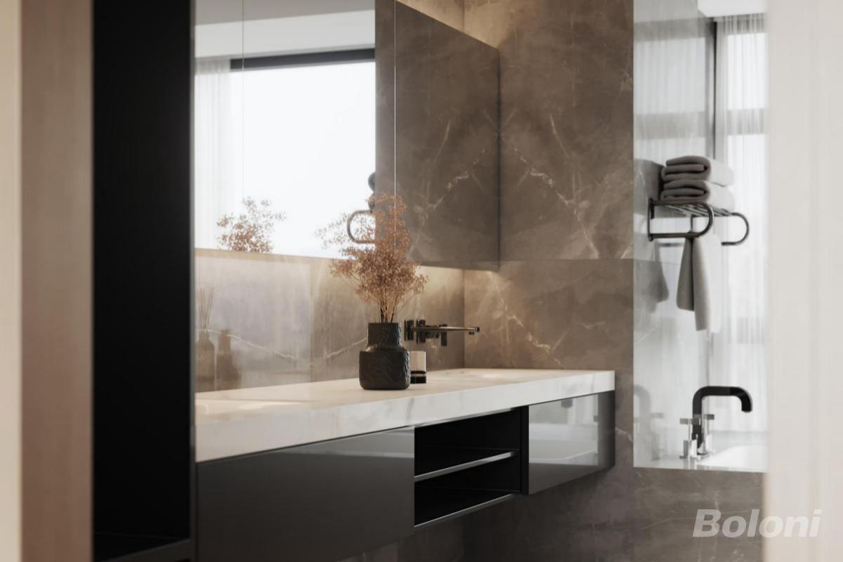 本卫浴轻奢设计以 “质感卫浴的奢适表达” 为核,深灰大理石墙面与黑白卫浴柜质感碰撞,金属五金与线性灯光暗藏精致,软装花艺点缀细节,于功能空间中通过材质层次与工艺把控,演绎洗漱场景里不彰自显的轻奢生活仪式感。