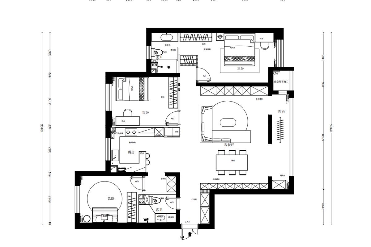 原有户型是四个卧室,客户想要客厅扩大,所以把原有的书房拆掉,融入到了客厅里,使客餐厅面积多大,厨房改成了开放式厨房,使整体空间通透感增强