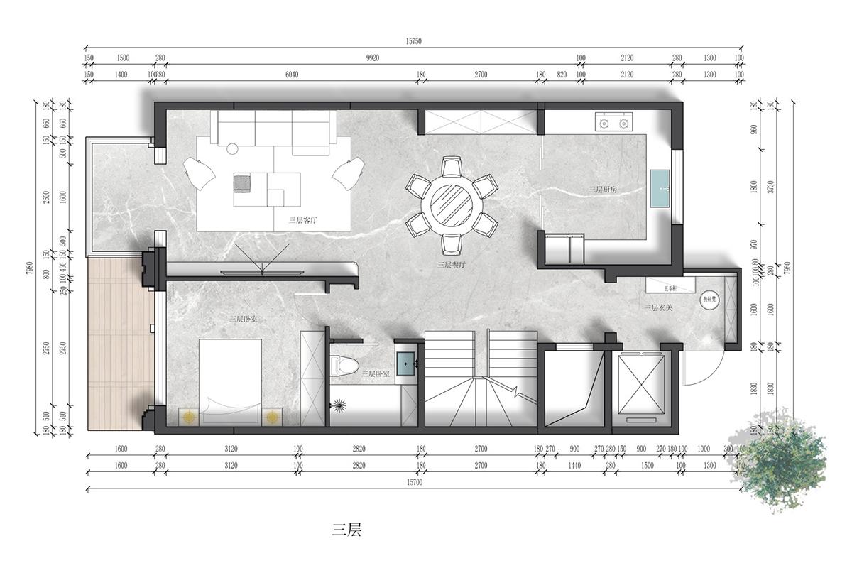 基于此住宅的规整布局,设计将着力构建贯通而富有层次的生活场景。我们以浅咖与暖灰为基调,通过开放式手法串联各功能区,并借楼梯形成视觉焦点。精选岩板、金属与木质,于简约体块中勾勒精致细节。整体摒弃浮华,以考究的材质比例与光影层次,于垂直维度中营造出静谧而优雅的现代轻奢格调。