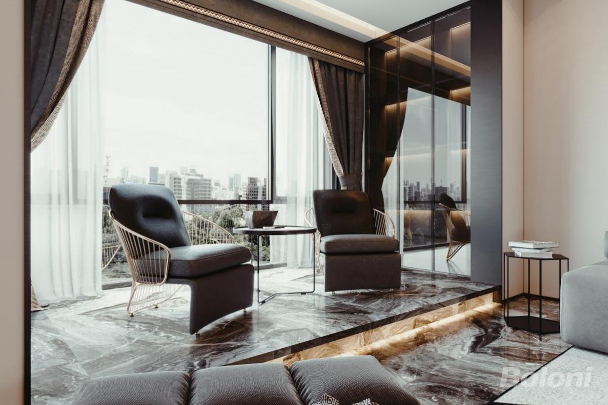 本案致力于刻画“少即是多”的轻奢意境。空间以深灰为主调,依托大面积落地窗引入光与景。金属框架休闲椅与天然大理石台面形成精妙对话,刚柔并济。设计摒弃繁复,仅通过材质本身的肌理与光影互动,于沉稳色调中勾勒出丰富的层次感,最终营造出一个静谧、优雅且与现代都市对话的质感角落。