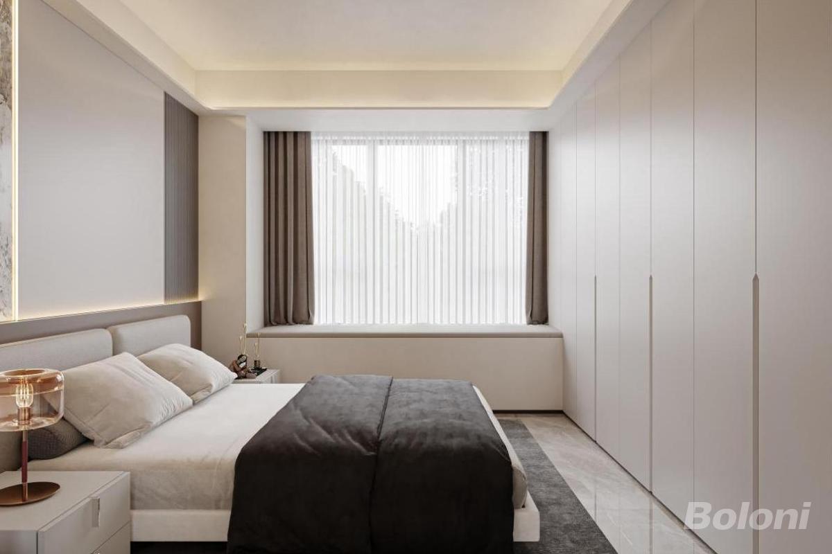 本卧室以低饱和色调筑就静谧基底,暗藏灯带勾勒层次。金属灯饰作精致点睛,石材地面晕染光泽,极简柜体与柔糯床品呼应。于克制线条间,藏纳轻奢“简而不凡,质蕴其中”的睡眠哲思 。