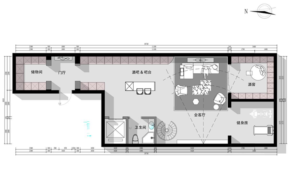 以通透动线串联功能区,门厅衔接储物间实现整洁过渡,酒吧 & 吧台承启会客与酒窖,健身区拓展休闲维度。分区既保独立又显联动,雅奢质感融于功能布局,让空间在秩序中兼具社交与松弛日常。