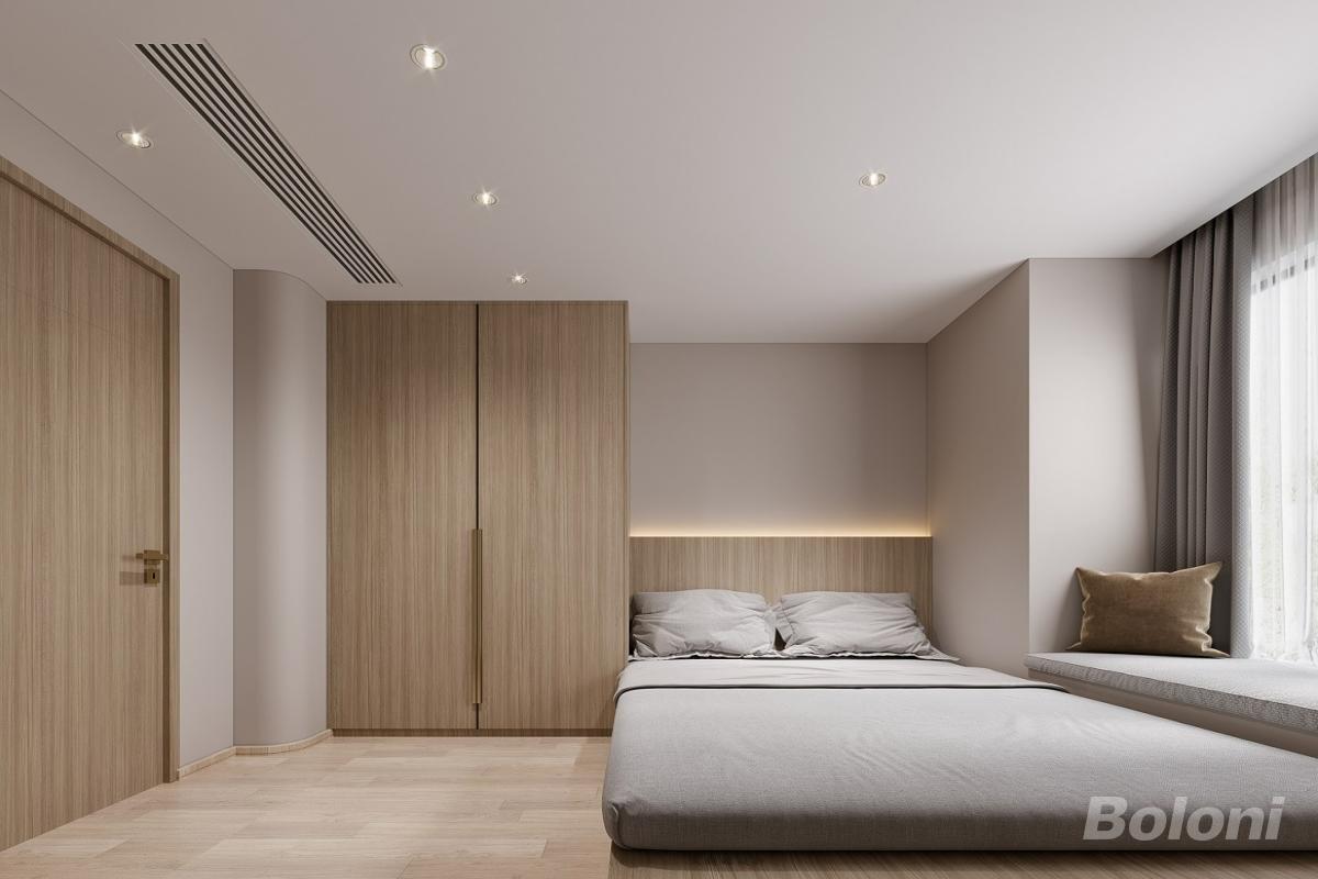 以浅木肌理为基底,柔灰软装衬出松弛质感,金属拉手轻缀轻奢细节。弧形转角弱化空间棱角,藏光灯带柔化氛围,飘窗与柜体一体化布局简化视觉,删繁就简间,让小空间兼具雅致与实用日常。