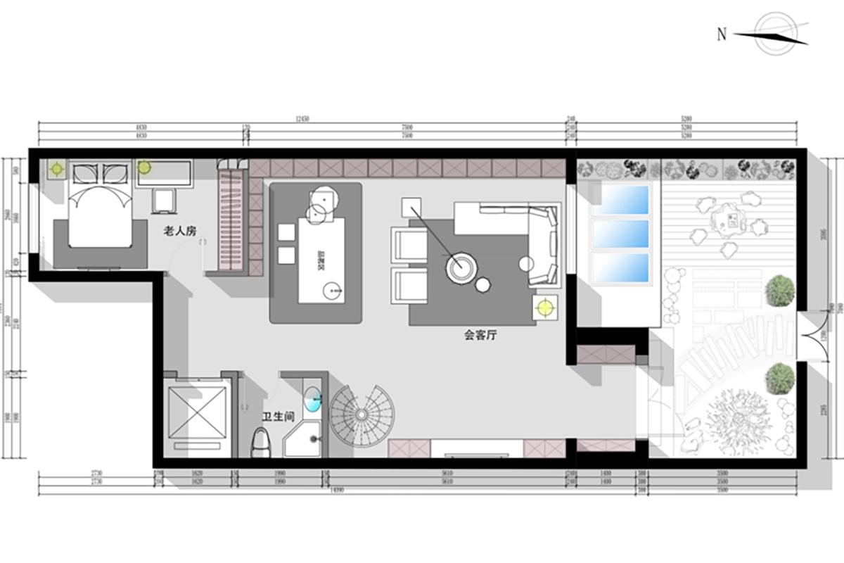 以会客厅为核心串联功能区,老人房邻近卫浴兼顾适老性,露台庭院引自然意趣入室。通透动线弱化空间边界,雅奢质感融于实用分区,既保社交场域的开阔,又留日常休憩的松弛,让空间兼具温度与秩序。