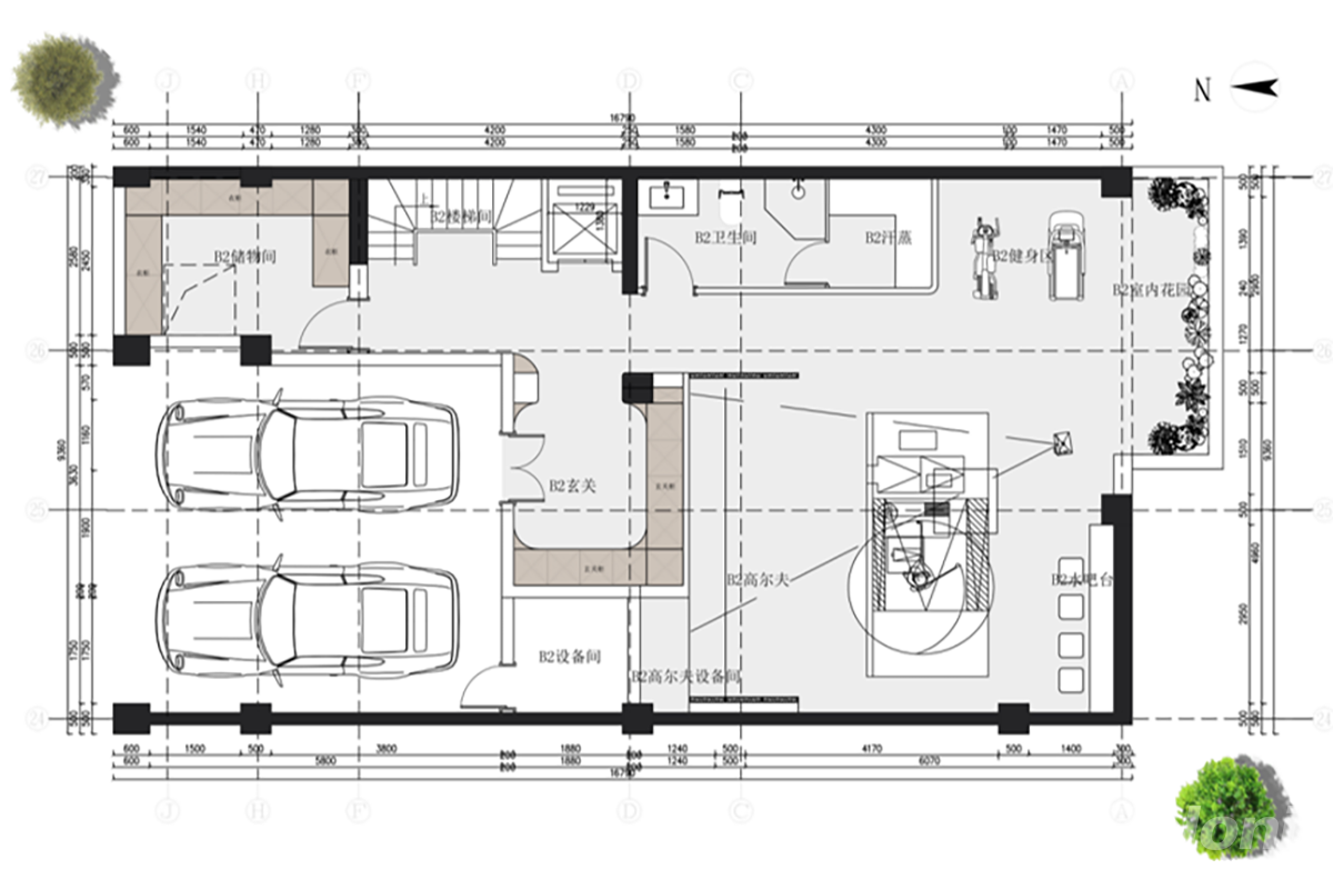 这 层轻奢设计,以双车位保障基础需求,嵌入储藏、卫浴等实用区,增设高尔夫练习、健身功能区,搭配室内花园柔化空间。动线流畅且功能分层,既满足生活收纳,又通过休闲模块提升地下空间的精致松弛感,实用与品质兼具。
