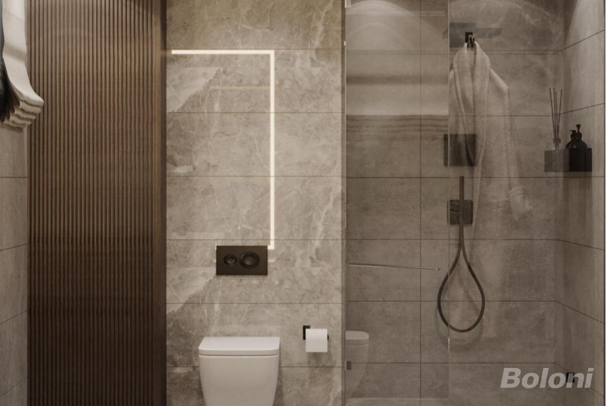 意式轻奢卫浴以浅灰大理石砖为底,深木格栅柔化边界。镜前线性光勾勒精致,金属五金与哑黑配件暗藏细节。玻璃隔断通透,材质碰撞间,将意式优雅与轻奢质感浓缩,于简约形制中,诠释静谧的精致日常 。