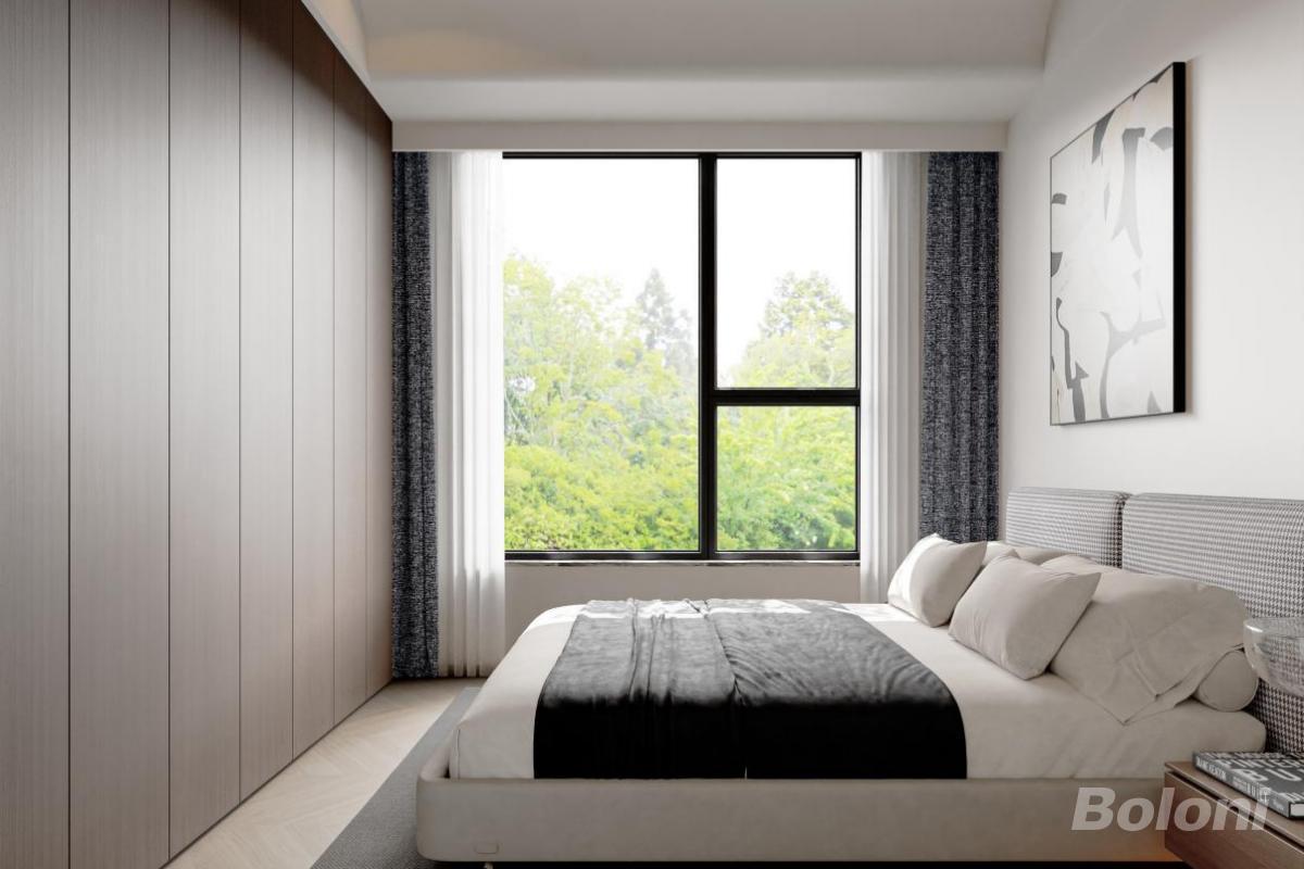 意式轻奢卧室以浅木调打底,低饱和灰黑床品呼应优雅。整面木饰面衣柜隐去琐碎,大窗引自然入室。艺术挂画、质感面料串联细节,在简洁线条与温润材质间,平衡轻奢精致与休憩松弛感 。
