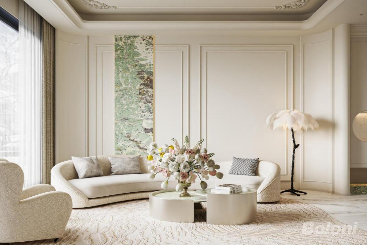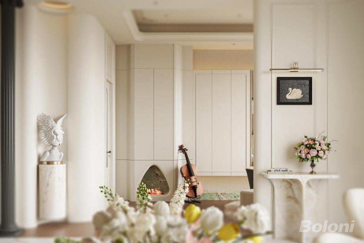 空间借法式轻奢解构松弛感:弧形边界柔化方正格局,吧台串联社交与休憩场域。以米灰为底,香槟金勾勒线条,丝绒与大理石碰撞质感,雕花隐于简约轮廓,让慵懒诗意与精致仪式,在开阔尺度里自然生长 。