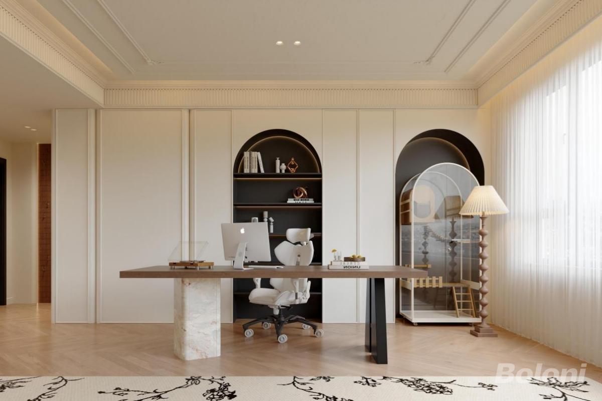 以法式优雅为骨,浪漫肌理为魂,本次设计延续古典对称美学,用柔润石膏线勾勒空间轮廓,搭配米白与奶油杏的柔和色调,融入亚麻布艺、胡桃木的自然质感。曲线廊柱与简约雕花暗藏精致,光影透过百叶窗洒下斑驳暖意,既复刻法式生活的仪式感,又以现代笔触简化繁复,让浪漫与松弛感渗透日常每一处。