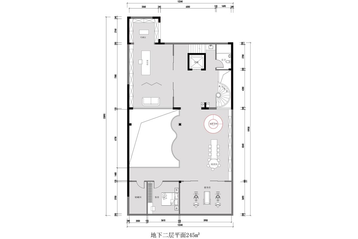 地下二层借法式基因激活地下场域:螺旋梯旋出灵动韵律,弧形边界柔化硬朗。阅读区围合静谧,健身、客房铺展松弛秩序。以胡桃木温润基底,衬丝绒与亚麻的优雅肌理,间接光晕染层次,让 245㎡地下空间成为浪漫与烟火交织的私享容器 。