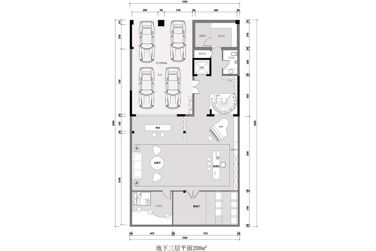 地下三层以法式浪漫编织 208㎡复合场域:螺旋梯旋出艺术韵律,钢琴区晕染优雅光晕,会客厅围合对称秩序。吧台、酒水区藏精致肌理,电竞与影院铺展松弛日常。胡桃木衬丝绒质地,间接光柔化边界,让功能区成为浪漫与烟火共生的私享天地
