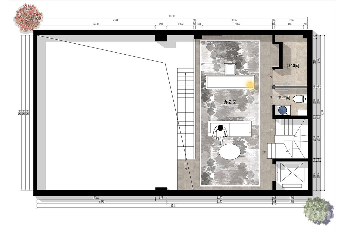 本案以奶油暖调铺陈空间:办公区用浅木家具柔化功能感,大面积柔雾质感软装 + 隐形储物门统一视觉,卫生间浅杏瓷砖延续柔和,让松弛暖意裹满每处,平衡实用与治愈氛围。