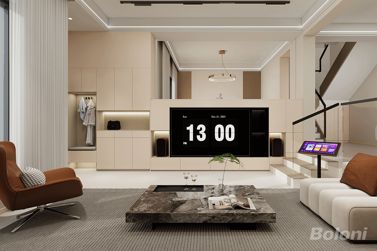 二层起居室为家人另外一个单独的聚会区域,更加私密,此区域也设置饮水区域,方便二楼居住人的喝水的便利性,无主灯设计也让空间灯光更柔和,温馨
