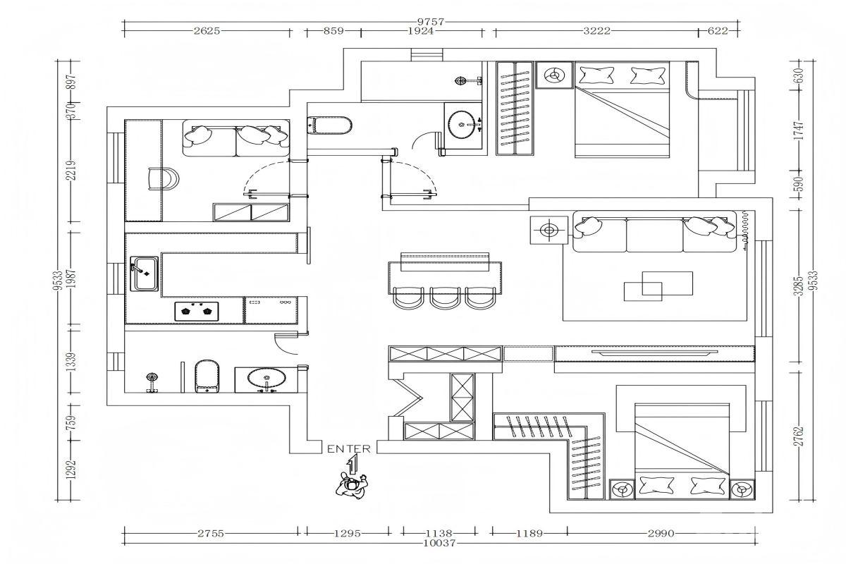 以“通透联动+功能适配”为核心,最大化释放空间采光与动线流畅度,用空间分区呼应中古松弛调性,兼顾复古美学与日常实用场景,实现风格统一与功能落地。