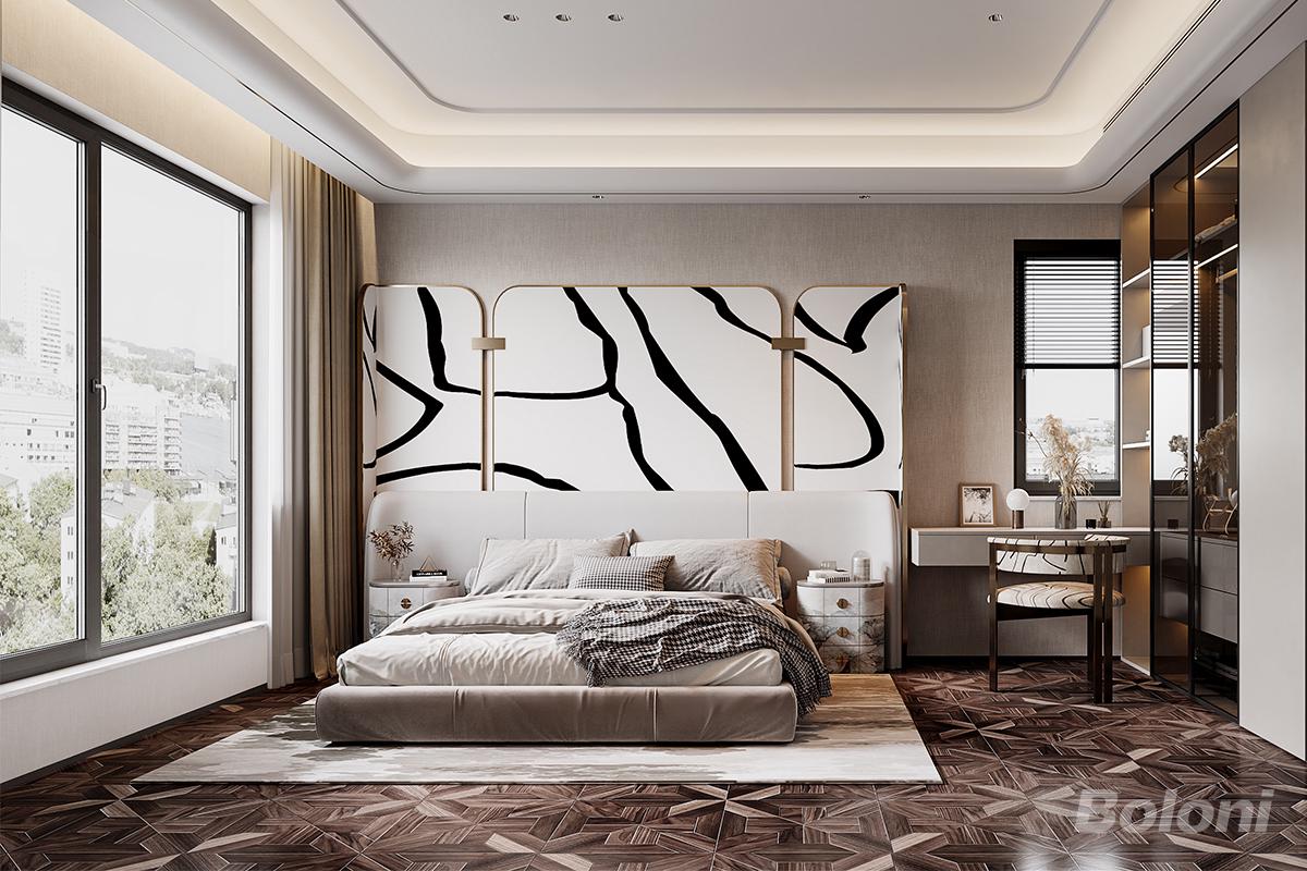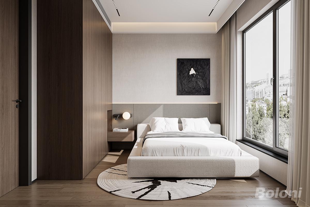 卧室区域位于空间内侧,最大化保障居住私密性,其中轻奢卧室设计是整体空间质感的核心体现,以“静谧舒适、精致内敛”为核心,打造兼具睡眠功能性与格调感的休憩空间。主卧采用套间设计,涵盖卧室、独立卫浴与步入式衣帽间,形成完整的私密生活闭环。