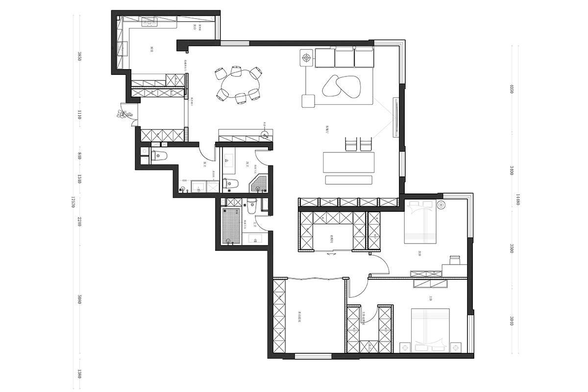 该户型为三室两厅,客餐通厅增强空间联动,双卧 + 主卧适配家庭居住,厨卫功能分区清晰。动线流畅,公私区域分离,布局兼顾通透感与实用性,满足日常居住与社交需求。