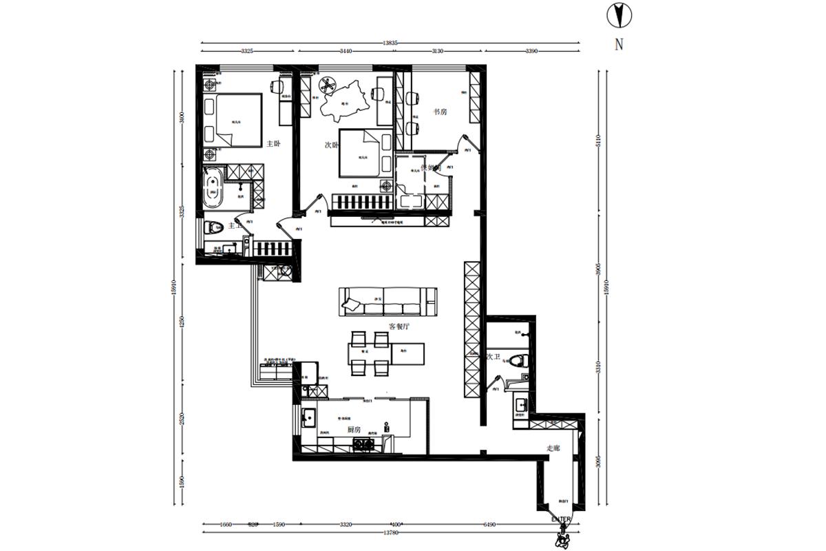 “轻简分合・质效共生” 公区开放布局消弭边界,让客餐厨动线舒展;私密区独立分区,保障休憩办公静谧性。以简约线条 + 整合收纳提效,借材质灯光细节增质,兼顾日常实用与松弛居住氛围,适配多元生活需求。