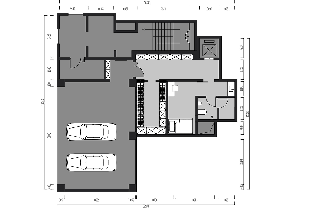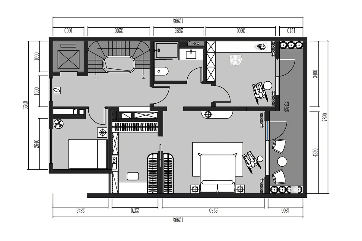 功能分层明确:低层含双车位车库 + 辅助空间;中层为餐客厨 + 卧室,满足起居;上层设双卧 + 露台,强化休憩;另有休闲层适配社交互动。空间配置完善,公私分区清晰,动线衔接流畅,适配多元生活场景。