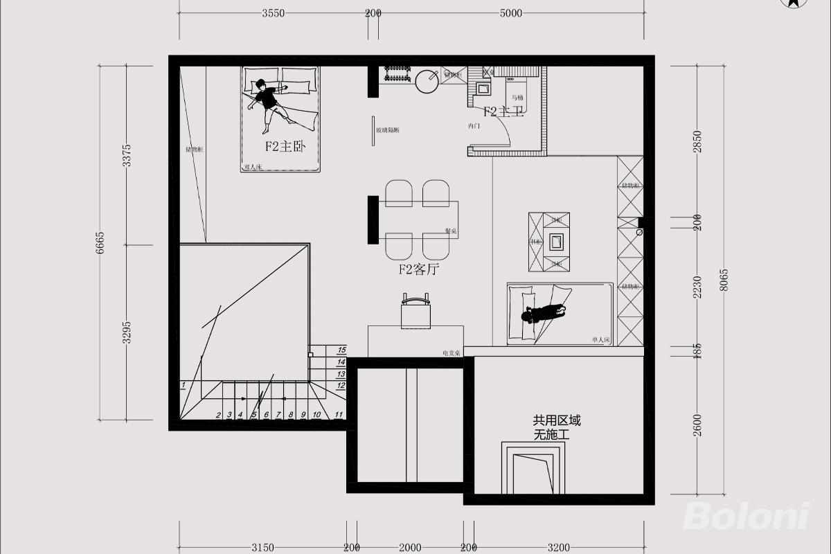这份复式设计围绕功能复合化与空间通透感打造,以现代混搭为基调,结合户型布局特点实现动线、功能与美学的统一。采用客餐厨一体化开放式布局,入户直达客餐厅核心区,厨房紧邻餐厅且以中岛台过渡,形成“烹饪-用餐-休闲”的流畅生活动线;将主卧、主卫与衣帽间规划在户型北侧,与公共区域形成动静分区,既保证私密感,又通过开放式客餐厅弱化空间割裂感。