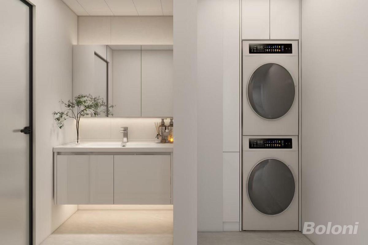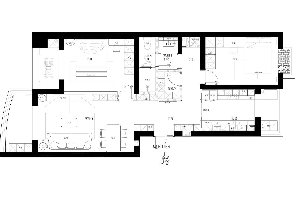 本方案以 “秩序共生,简而不凡”*为内核,打造功能与美学兼具的居住空间。 餐厨区设推拉门,闭合隔绝油烟,开启则与客餐厅相融。厨房采用双一字型布局,平行操作台划分洗切、烹煮功能区,嵌入式厨电与高柜隐匿于简约立面,动线高效利落。 客餐厅开放式设计,无繁复缀饰,光影与软装相映成趣。卫浴区干湿分离,全屋收纳系统隐形嵌入各空间。整体设计以极简线条与克制色彩,雕琢生活本真之美。