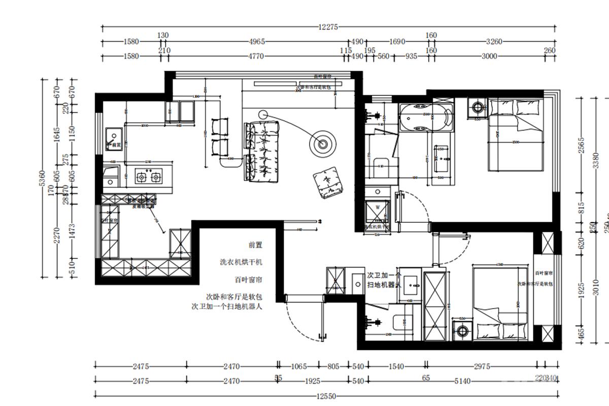 1. 空间布局与功能分区 • 动静分区清晰:公共活动区(客厅、餐厅、厨房)集中在户型西侧和中部,休息区(主卧、次卧)位于东侧和南侧。这种布局有效避免了活动区域对休息区域的干扰,保障了卧室的静谧性。 • 公私分区明确:入户后经过公共区域才进入卧室,减少了访客对私人空间的直接打扰,保护了居住隐私。 • 功能配置齐全:双卫生间设计满足了多成员家庭的使用需求,避免了早晚高峰的使用冲突。同时预留了洗衣区和家政空间,让家务动线更流畅。